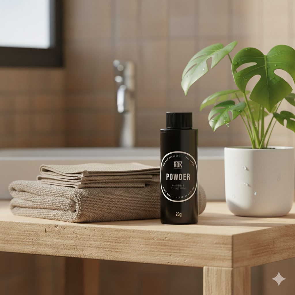 For the ultimate textured style, shake a small amount of powder directly onto the roots or apply by hand by first shaking into palms. Then using fingers, work the powder through the roots, making sure to move it evenly through the scalp until evenly distributed, styling until desired look is achieved. If you want to enhance your look, we recommend pairing ROK Powder with our ROK Clay for a little extra volume and texture.